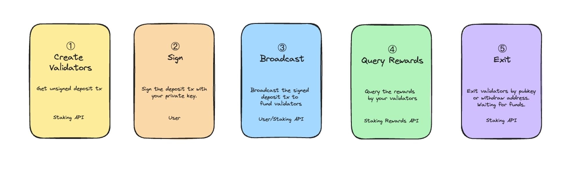 此 API 允许您与以太坊区块链的质押流程进行交互。以下是主要功能的细分: