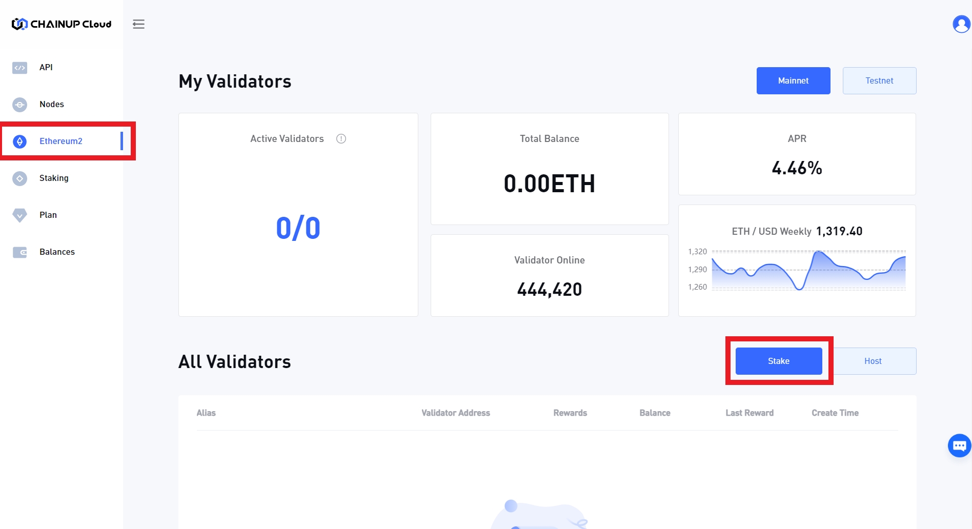 使用 ChainUp Cloud. 在以太坊上设置质押的简短指南。