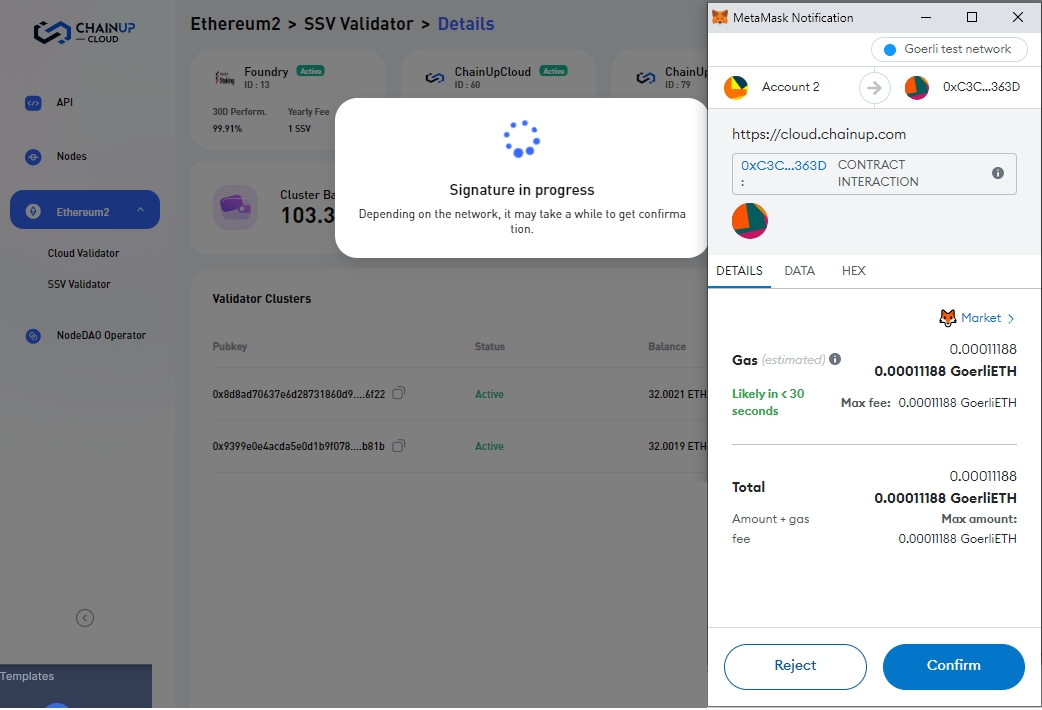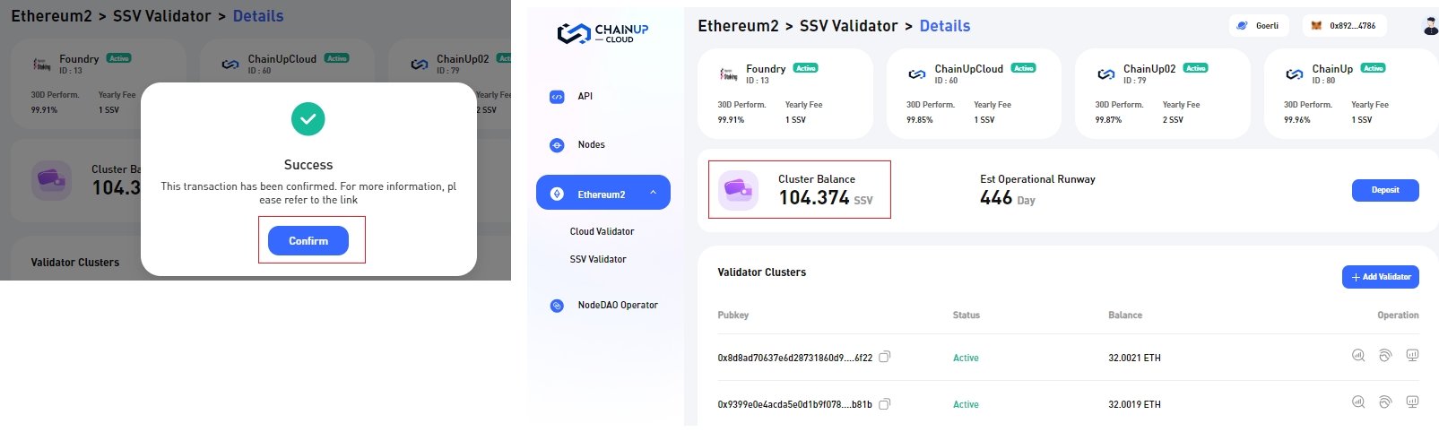 Step 5: Once the transaction is successful, you will receive a confirmation that it has been completed. The cluster balance will be updated to show the new amount, which could extend the amount of time the selected validator cluster can operate for.