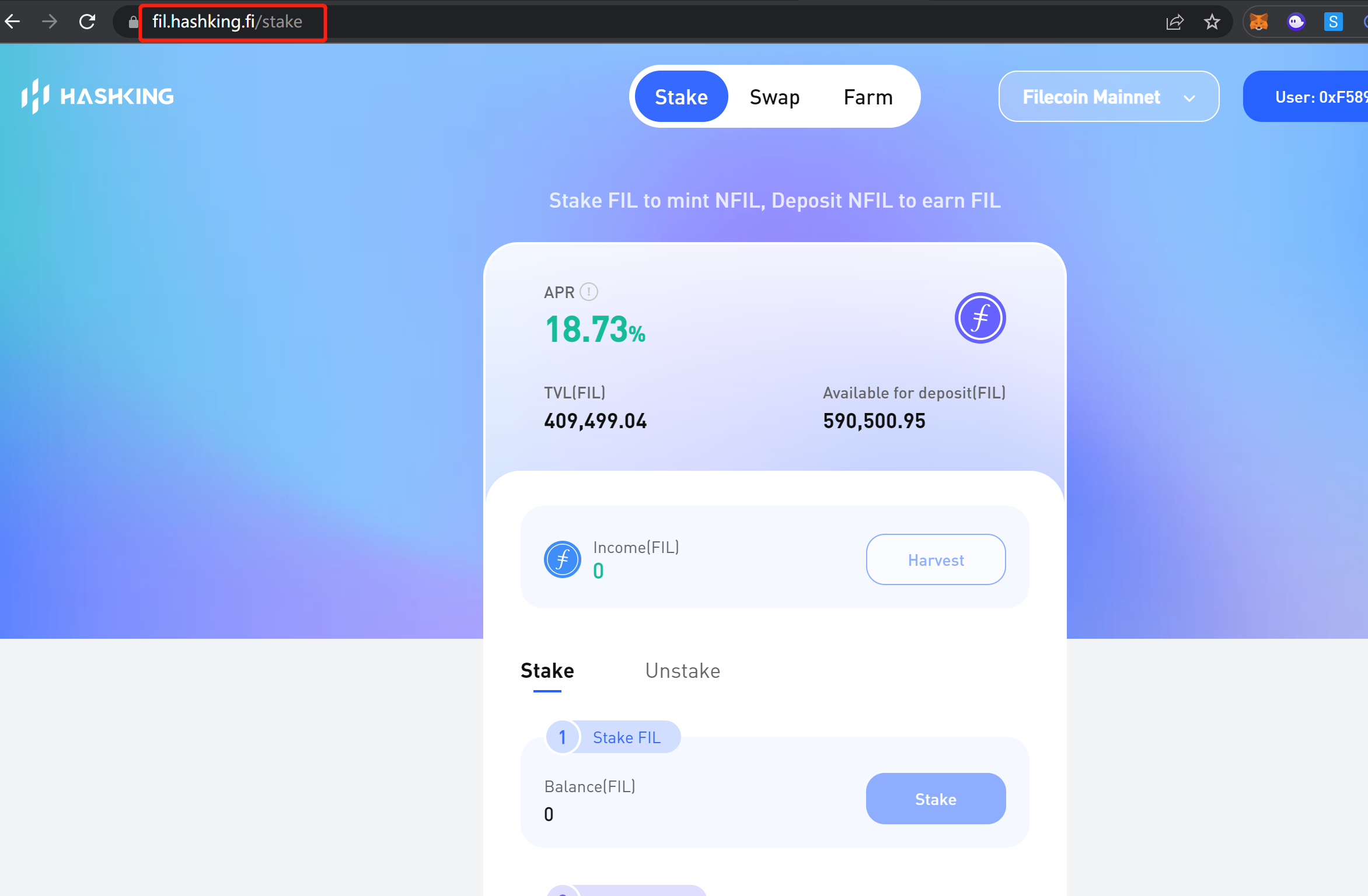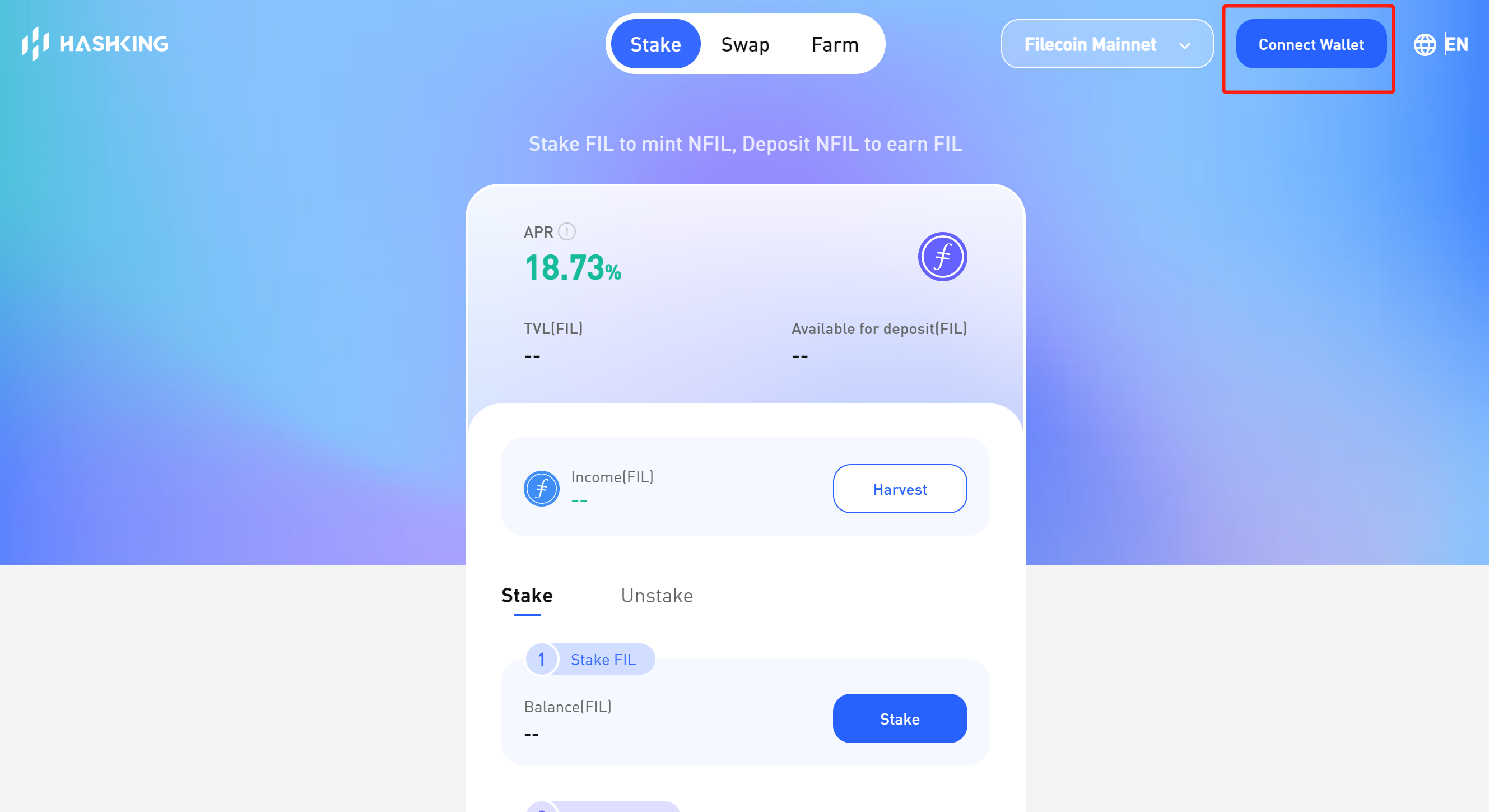 * 打开[`Hashking FilStaking官网`](https://fil.hashking.fi/stake)<br>
