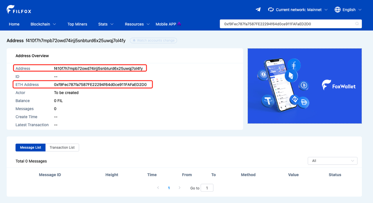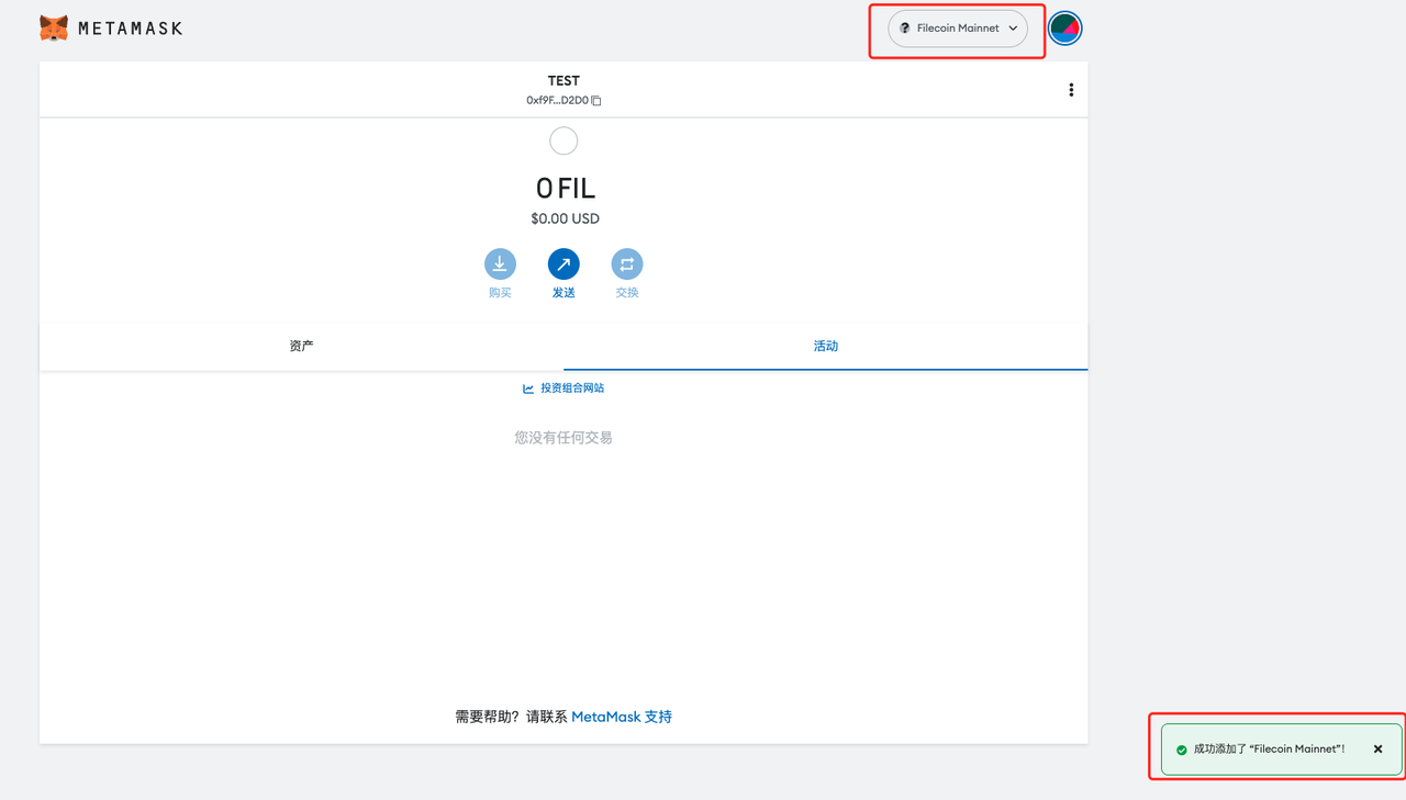 * 添加成功后会自动切换到Filecoin-EVM网络
