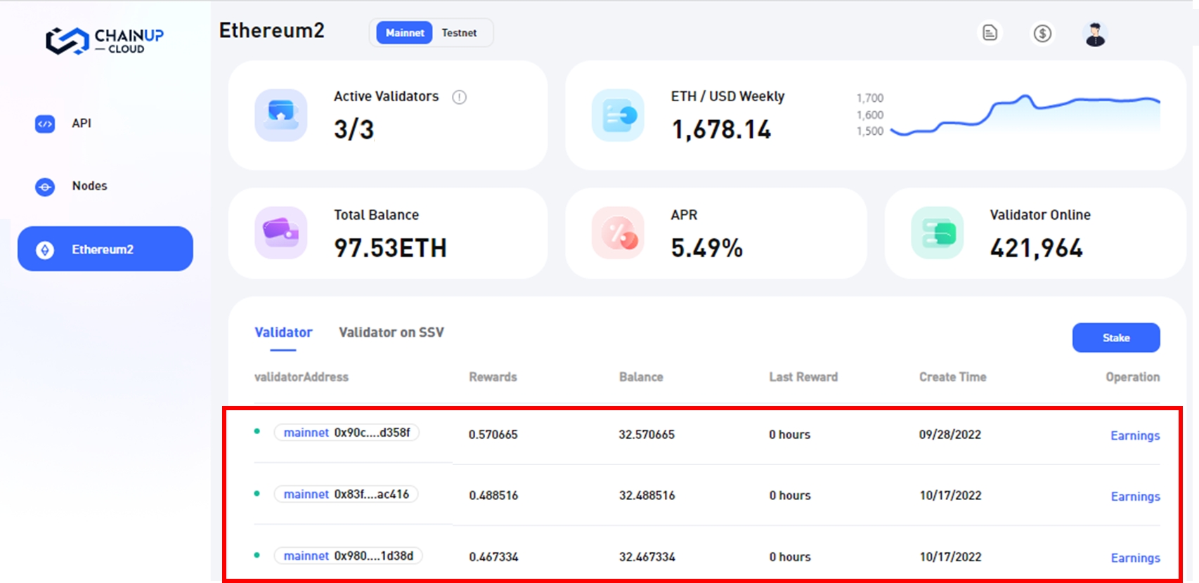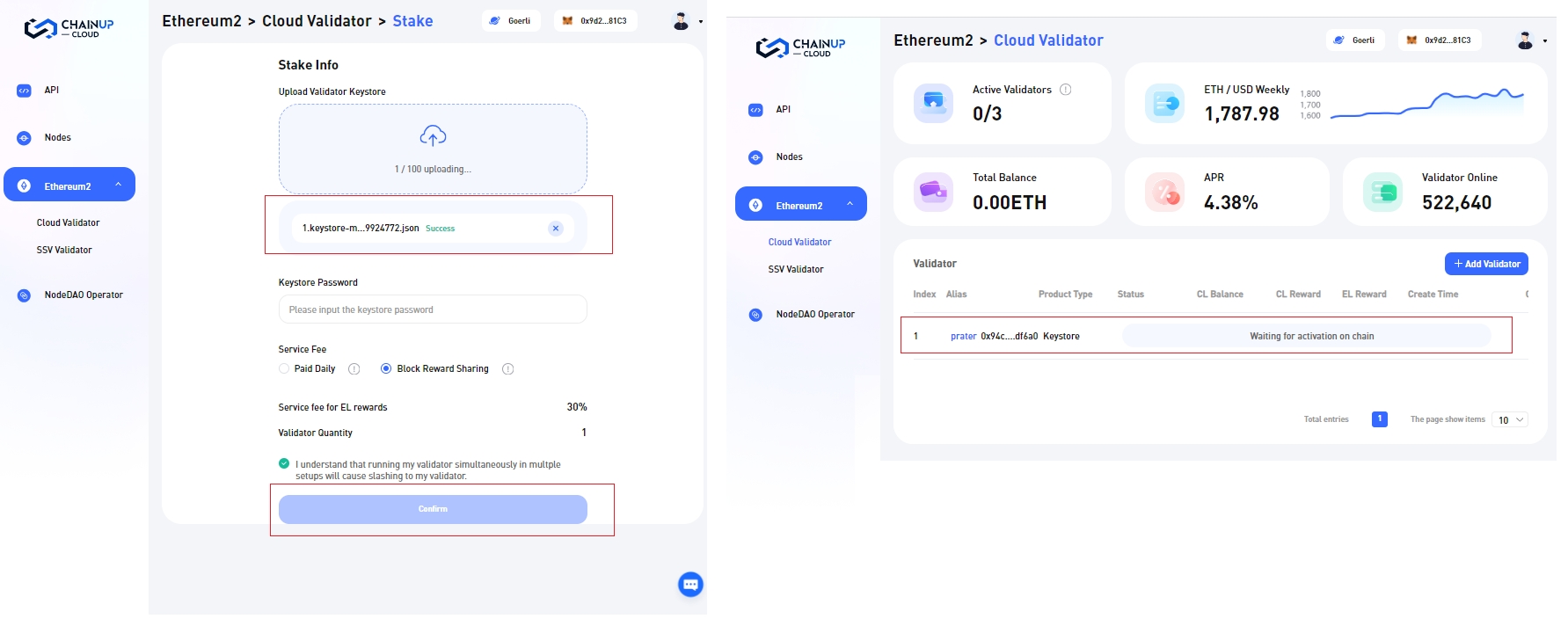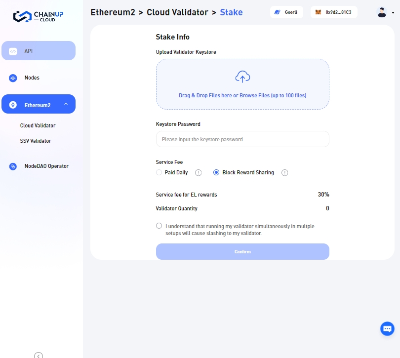 使用 ChainUp Cloud 在以太坊上设置质押的简短指南。
